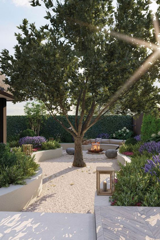 六安庭院景观设计_带有环形座位区和台阶的小庭院设计1